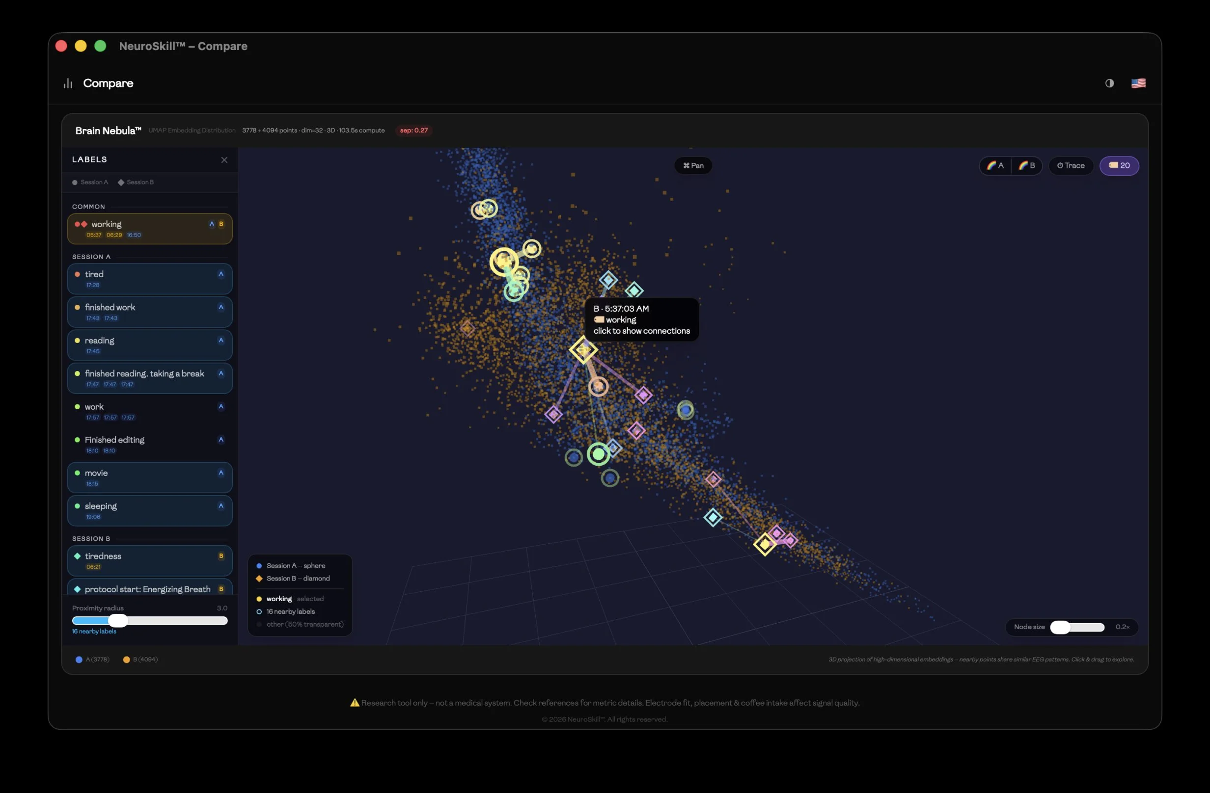 In this work we present a novel system that is designed to build foundational representation of the brain states provided by the Human for the Agent to index, align, search, and navigate. In most cases it is done in real-time and on the edge (your local personal computer), while engaging with the Human; in other cases – to perform deep sleep research while Human is not in an active conscious state.